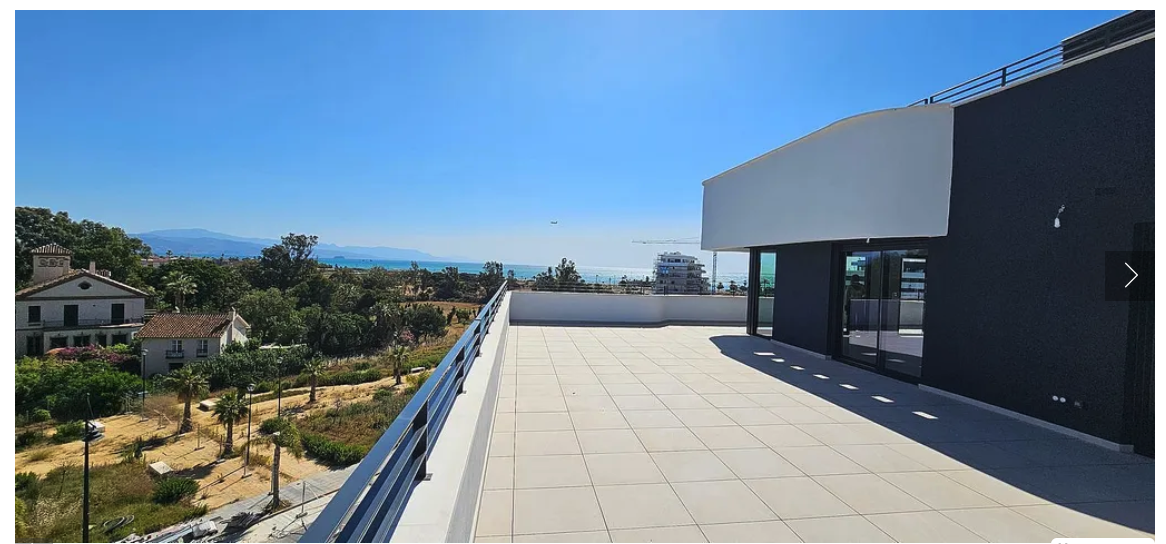 A tan sólo unos pasos de la playa de Los Álamos se encuentra este espectacular ático a estrenar con vistas frontales al mar y a la bahía de Málaga, en el exclusivo residencial de nueva construcción Habitat Alborán Mistral (2025).