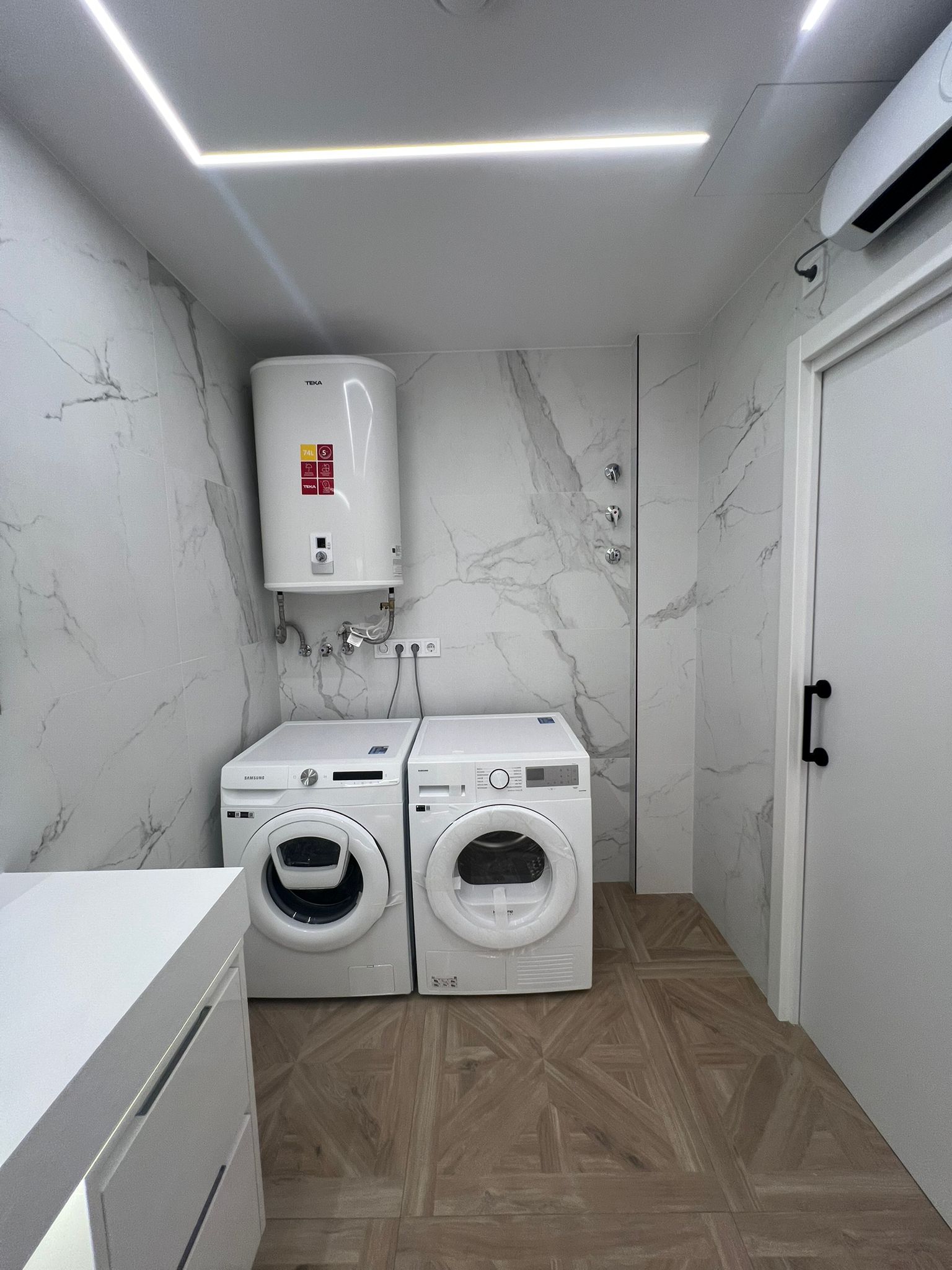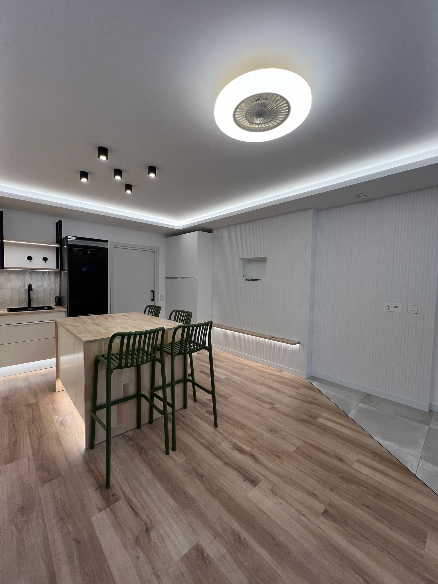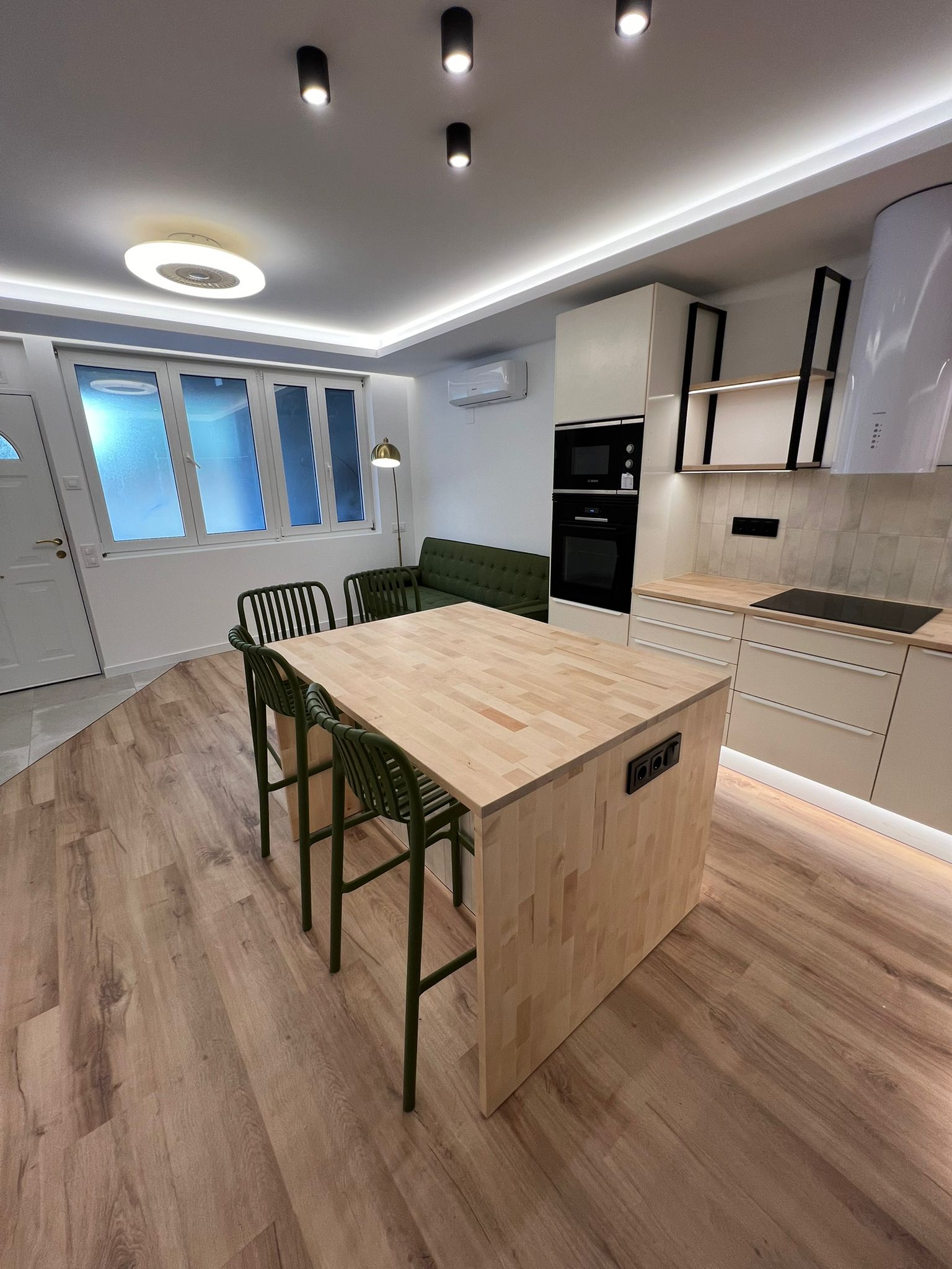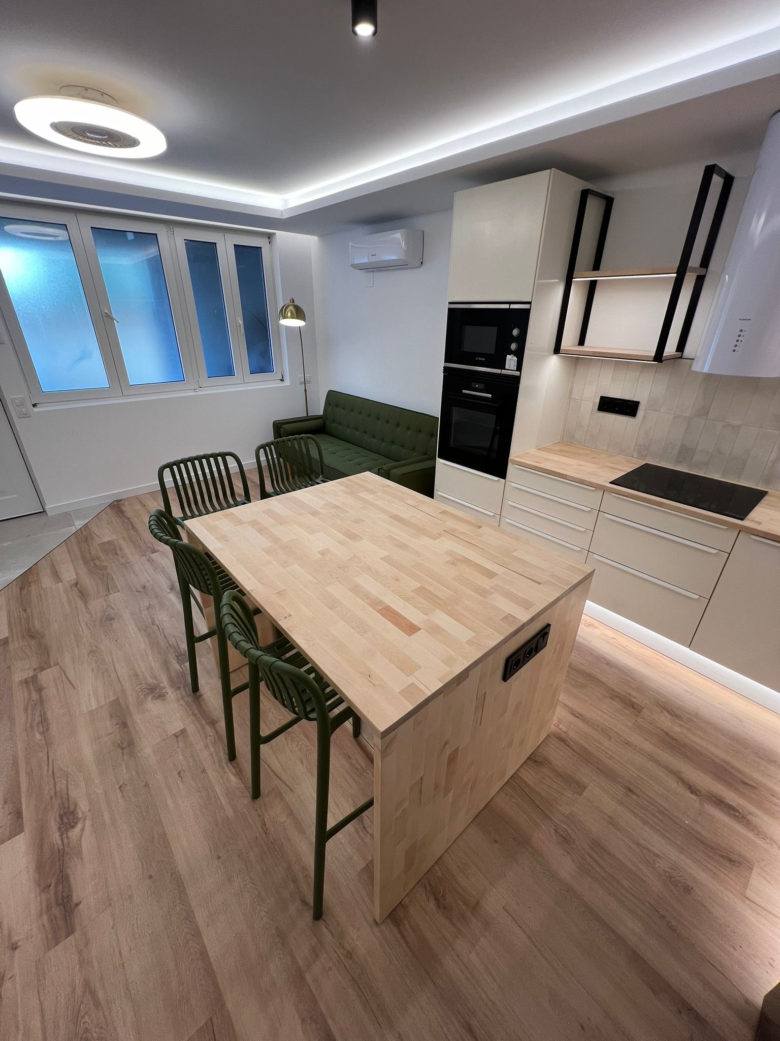El inmueble cuenta con iluminación indirecta LED, suelo de parquet y aire acondicionado con bomba de calor, lo que garantiza un ambiente confortable durante todo el año.